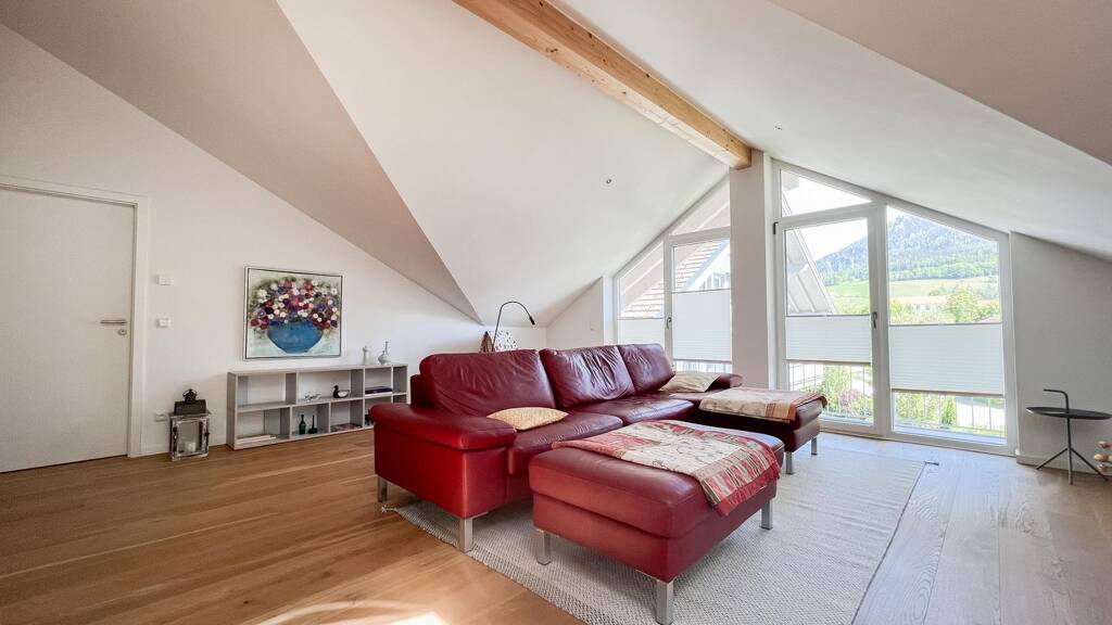 In einem modernen Vier-Parteienhaus, das 2018 in hochwertiger Ziegel-Massivbauweise errichtet wurde, erwartet Sie diese besondere Dachgeschosswohnung, die modernen Wohnkomfort mit alpinem Flair vereint. Die ruhige Lage im beliebten Ruhpolding und die durchdachte Raumaufteilung machen dieses Zuhause zu einem idealen Rückzugsort für alle, die Natur, Design und Qualität zu schätzen wissen.