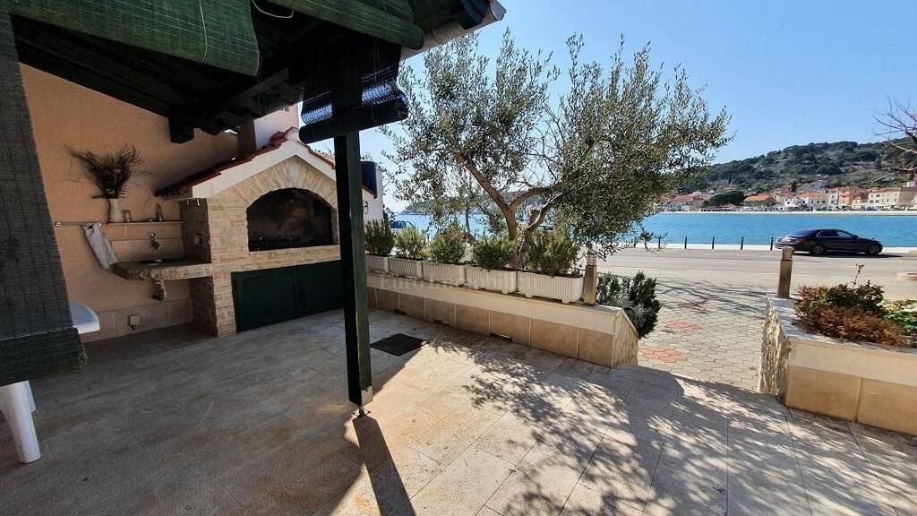 In Tisno, in der Nähe der Insel Murter, steht ein wunderschön eingerichtetes Einfamilienhaus in der ersten Reihe zum Meer zum Verkauf.