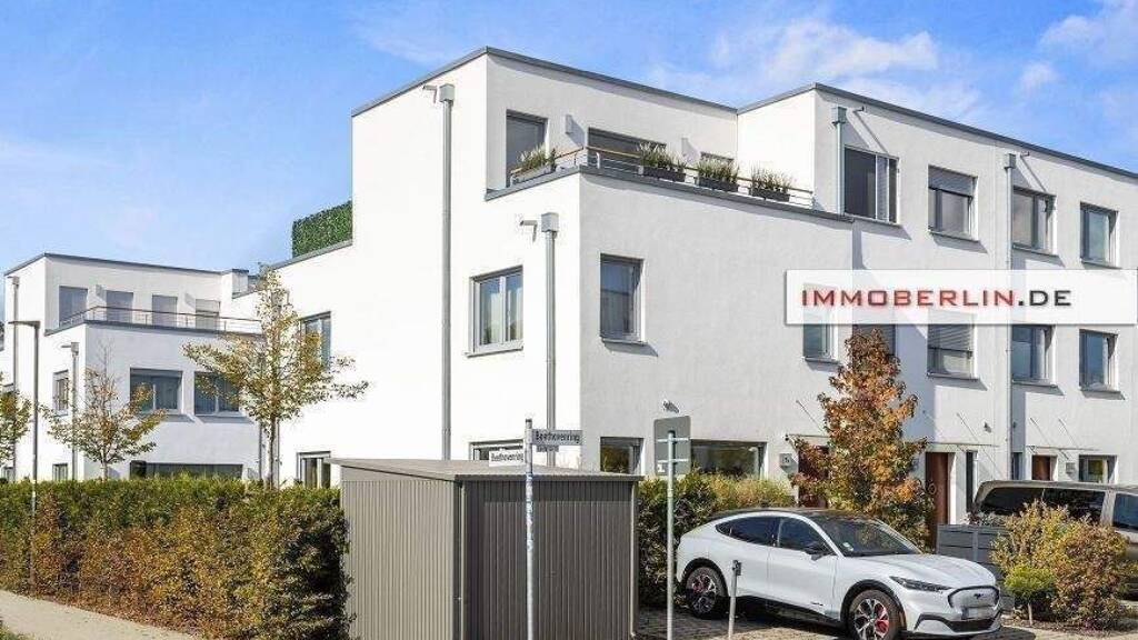Dieses sehr attraktive Reihenendhaus verbindet stilvolles Wohnen mit einer durchdachten Architektur, viel Tageslicht und exquisiten Ausstattungen. Im Erdgeschoss empfängt ein großzügiger Wohn-, Koch- und Essbereich mit Zugang zu einer hübschen Sonnenterrasse. Die offene Küche mit Koch-/Essinsel und zeitgemäßen Einbaugeräten steht im Mittelpunkt des Familienlebens. Das taghelle Gäste-WC und der Hauswirtschaftsraum steigern den Komfort. Unter der Treppe ins Obergeschoss existiert eine praktische Abstellfläche. Im Obergeschoss begeistert das Schlafzimmer mit einem schicken taghellen Bad en suite, das u.a. mit großformatigen Fliesen, einer Wanne und Handtuchheizung ausgestattet ist. Das separate Duschbad und die zwei sehr behaglichen Zimmer, nutzbar z.B. als Kinder-, Arbeits- und/oder Gästezimmer, runden diese Etage harmonisch ab. Das Dachgeschoss eröffnet ein großzügiges Zimmer mit direktem Zugang zu zwei sonnigen Dachterrassen mit einer Fläche von ca. 21m² und ca. 14 m² — hier sind herrliche Ausblicke, Freiräume und fabelhafte Momente mit der Familie und Freunden vorprogrammiert. Holzparkett in allen Wohnräumen und frisch weiß gestrichene Wände schaffen ein angenehmes Ambiente. Die Wärmeversorgung übernehmen die in allen Zimmern verlegten Fußbodenheizungen, die auf Wunsch auch ferngesteuert werden. Ein modernes Smart-Home-System mit Sicherheitsfunktionen, Glasfaseranschluss sowie Rollläden an allen Fenstern bieten hohen Komfort. Zur Senkung der Energiekosten trägt ein Balkon-Solarkraftwerk bei, während der ausgezeichnete Schallschutz für ruhiges Wohnen sorgt. Im Außenbereich überzeugt eine Terrasse im Erdgeschoss, die sich ideal für das Frühstück oder den Grillabend eignet. Der eingefriedete Sonnengarten ist durch Hecken weitgehend vor neugierigen Blicken geschützt und wird durch ein hochwertiges Gartenhaus ergänzt. Für eine bequeme Gartenpflege steht ein separater Außenwasseranschluss bereit. Direkt vor dem Haus befinden sich zwei Pkw-Stellplätze und eine E-Ladestation mit 11 kW, erweiterbar auf 22 kW. Dieses sehr attraktive Haus präsentiert sich mit einer gelungenen Kombination aus großzügigen Zimmern, moderner Technik und sonnigen Außenbereichen als ein Familiendomizil mit hohem Wohlfühlfaktor — ein Immobilienangebot, das besticht.