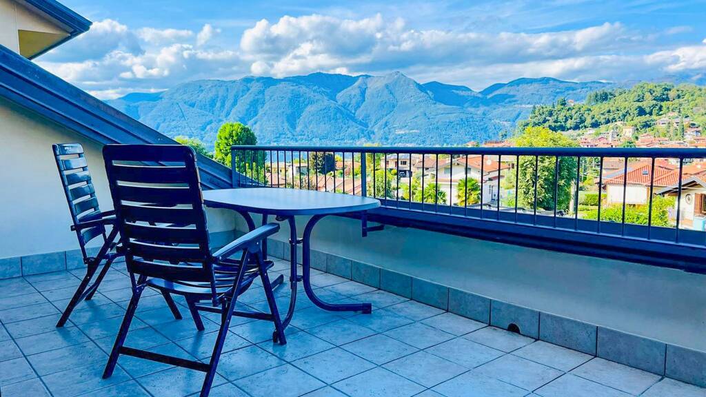 In sonniger Hanglage, in der ersten Etage einer gepflegten Residenz mit Gemeinschaftspool und Tennisplatz, erwartet Sie diese liebevoll auf zwei Ebenen angelegte Maisonettewohnung – ein behaglicher Rückzugsort mit traumhaftem Blick auf den Lago Maggiore.