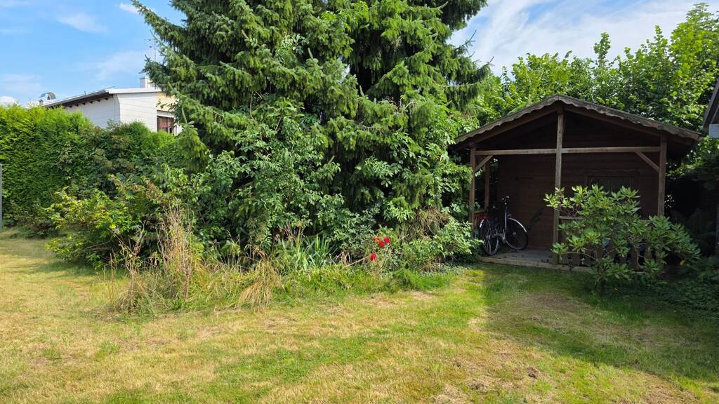 Ein wahres Highlight ist das großzügige Grundstück mit einem idyllischen Gartenhaus. Ob ein farbenfroher Ziergarten, ein produktiver Gemüsegarten, ein spannender Abenteuerspielplatz für Kinder, ein privater Rückzugsort mit Pool oder eine stilvolle Pergola - das Grundstück bietet unzählige Gestaltungsmöglichkeiten. Auch ein Anbau zur Erweiterung des Wohnraums ist denkbar.