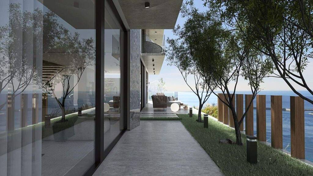 Auf zwei wunderschön gestaltete Etagen verteilt ist jede Ebene vollständig über einen privaten Hausaufzug erreichbar, was Komfort und Bequemlichkeit für alle Altersgruppen gewährleistet. Die offenen Wohnbereiche verfügen über luxuriöse 120×120 Living Voon Keramikböden, glatt verputzte Wände und LED-Ambientebeleuchtung. Große Glasöffnungen rahmen die spektakulären Ausblicke auf das Meer und die Berge ein, die diese Villa wirklich außergewöhnlich machen.