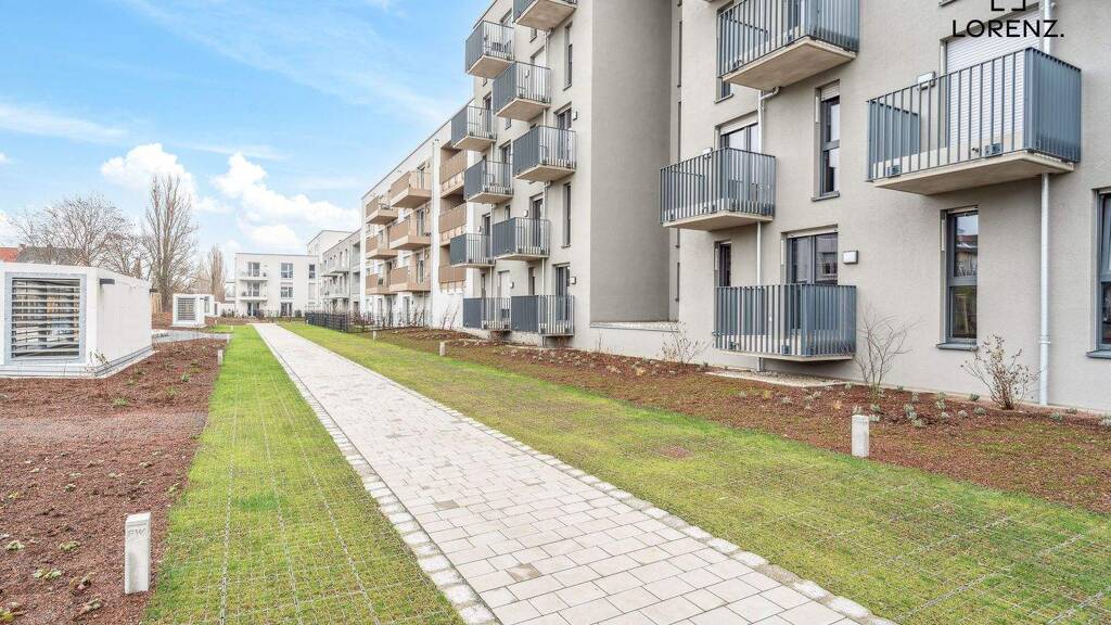 Im neu entstehenden Stadtquartier "Lichtenreuth" bietet die Wohnanlage LORENZ insgesamt 183 Wohneinheiten, von denen 121 Apartments möbliert sind und 62 als klassische Mietwohnungen zur Verfügung stehen. In der zugehörigen Tiefgarage im Untergeschoss befinden sich 143 Pkw-Stellplätze, daneben die Mieterkeller sowie Fahrrad- und Technikräume. Eine eigene Paketanlage sorgt für stressfreie Zustellungen. In drei Bauabschnitten werden die drei- bis sechsgeschossigen Gebäude als geschlossene Blockrandbebauung errichtet, die einen begrünten Innenhof umschließt. Fünf Treppenhäuser mit Aufzugsanlage erschließen den Neubau, der in Massivbauweise mit Untergeschoss inklusive Tiefgarage konzipiert ist. Dabei bestimmen die klaren Linien moderner Architektur, bodentiefe Fensterfronten und schicke Fassaden mit teilweisen Klinkerflächen das Bild. Die umgebenden Freiflächen und der Innenhof schaffen mit weitläufigen Rasenanlagen, Kleinbäumen, Sträuchern und Hecken eine grüne Oase, die zur gemeinsamen Nutzung einlädt. Eine große Spielfläche mit Sand und Spielgeräten bietet für die Kleinen einen Ort zum Toben, während die Sitzgelegenheiten als Treffpunkt für die Mieter bereitstehen - immer gut für ein nachbarschaftliches Schwätzchen zwischendurch.
