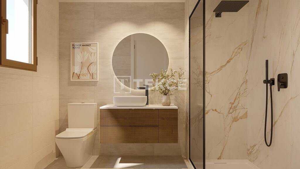 Inmitten einer natürlichen Umgebung und auf einer Anhöhe gelegen, legt das Design dieser Wohnanlage großen Wert darauf, die Bewohner mit der Natur zu verbinden. Die Gemeinschaftsbereiche sind strategisch auf einen nahe gelegenen Pinienwald ausgerichtet, sodass die Wohnungen die Vielfalt der Umgebung in vollen Zügen genießen können. Diese durchdachte Lage maximiert das natürliche Licht und bietet Sonnenschutz im Sommer und Wärme im Winter. Geräumige Terrassen dienen sowohl als elegante architektonische Elemente als auch als praktische begehbare Sonnenschutzvorrichtungen und fungieren als Übergangsräume, die den Wohnbereich ins Freie erweitern. Im Inneren ist die Raumaufteilung von Harmonie mit der Landschaft und viel natürlichem Licht geprägt. Große Fenster durchfluten den zentralen Wohnbereich, in dem Küche, Ess- und Wohnbereich miteinander verschmelzen, mit Licht und Luft und öffnen sich direkt zur Terrasse, um einen nahtlosen Übergang zwischen Innen- und Außenbereich zu schaffen. Die Schlafzimmer sind durchdacht in einem separaten, privateren Bereich untergebracht, sodass Ruhe und Entspannung durch gesellschaftliche Aktivitäten nicht gestört werden. Das Projekt bietet eine Auswahl an Häusern mit 2 oder 3 Schlafzimmern, jeweils mit einer großen Terrasse, und ist auf modernes Wohlbefinden ausgelegt, das durch eine optimale Ausrichtung, hochwertige Materialien und ein Hausautomationssystem für Komfort und Energieeffizienz ergänzt wird an.