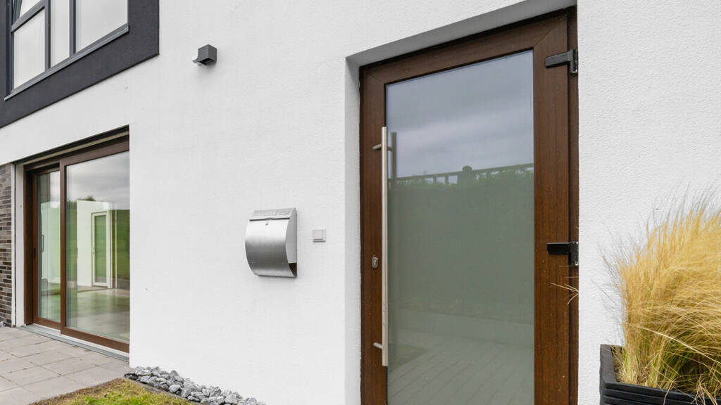 Die Immobilie wurde als Architektenhaus mit einem puristischen lichtdurchfluteten Design und funktionalen Einrichtungsdetails im Jahr 2015 als KfW 70 Haus gestaltet. Eine Wärmedämm-Verbundfassade in Kombination mit dunkelrotem Verblendmauerwerk charakterisiert das Gebäude. Das Dach verfügt über eine weiße Abdeckung. Doppelgeschossige Gauben sorgen für optimale Lichtverhältnisse und Raumnutzung. Die 3-fach Isolierverglasung garantiert eine hervorragende Wärmedämmung.