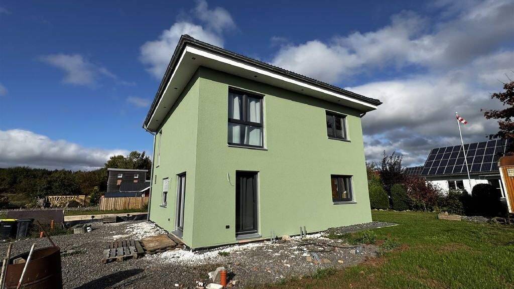 Auf einem großzügigen Grundstück von 777 m² in Waldeck-Höringhausen erwartet Sie diese im Jahr 2023 errichtete Stadtvilla in Holzständerbauweise. Das von der Firma Partnerhaus realisierte Fertighaus überzeugt nicht nur durch seine moderne Architektur, sondern auch durch eine durchdachte Raumaufteilung und die energieeffiziente Haustechnik nach KfW 40EE Standard. Mit einer Wohnfläche von rund 121 m², verteilt auf zwei Vollgeschosse, bietet die Immobilie ideale Voraussetzungen für Paare und Familien.