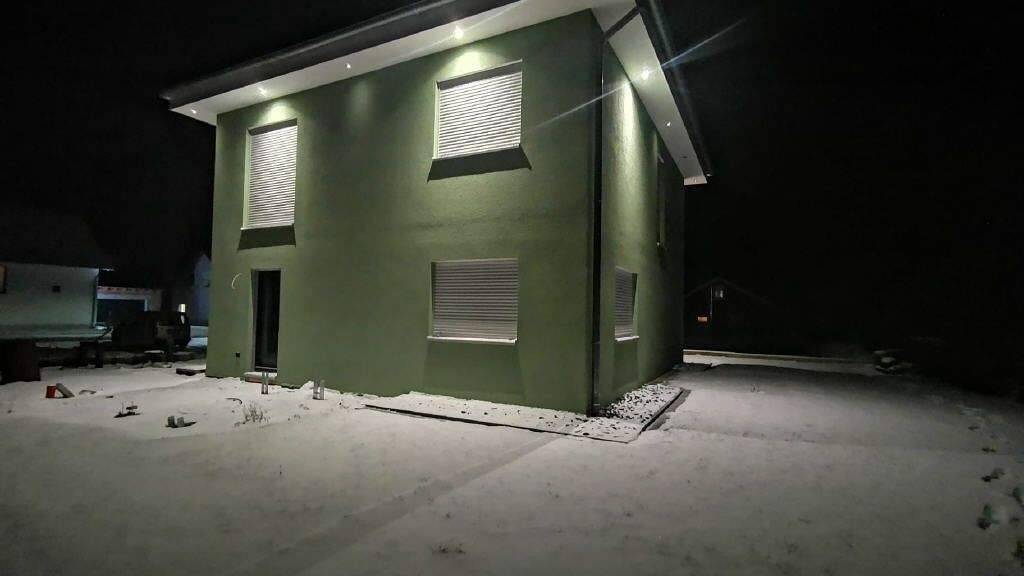 Auch in puncto Ausstattung erfüllt die Immobilie höchste Ansprüche: Alle Wohnräume verfügen über Fußbodenheizung. Als Bodenbelag wurden Fließen gewählt. Ein integriertes Lüftungssystem sorgt für Frischluftzufuhr. Für die Installation einer Photovoltaikanlage sind bereits Leerrohre vorbereitet. Komfortable Details wie elektrische Rollläden, eine Haustür mit Fingerabdrucksensor sowie eine stimmungsvolle Beleuchtung im Wohn- und Essbereich runden das Immobilienangebot ab. Bei den verbauten Fenstern handelt es sich um Kunststofffenster mit 3-fach Verglasung im Farbton anthrazitgrau. Das Walmdach ist mit Betondachsteinen (Granit) gedeckt.