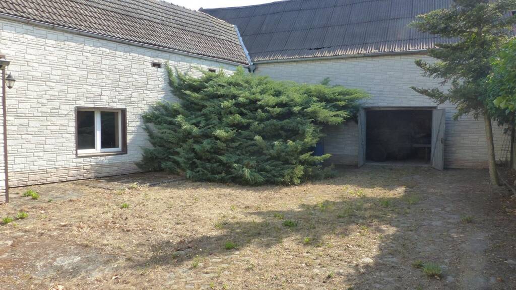 Das zum Verkauf stehende Grundstück hat eine Größe von etwa 473 m² und ist mit einem Dreiseitenhof bestehend aus dem Bauernhaus, dem direkt angrenzenden Nebengebäude (früherer Stall) und einer Scheune bebaut. Es gibt eine befestigte Hoffläche aber keinen Garten.