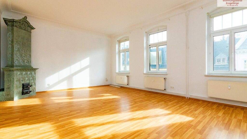 In einem denkmalgeschützten Mehrfamilienhaus im Annaberger Stadtzentrum befindet sich diese 3-Raum-Wohnung im 2. Obergeschoss. Sie besteht aus einem sehr großen Wohnzimmer, Kinderzimmer, Schlafzimmer, Küche und Tageslichtbad mit Wanne und Dusche. Alle Räume wirken durch die großen Fenster sehr hell und freundlich. Durch die hohen Decken, die aufgearbeiteten, alten Türen und die angedeutete Stuckdecke im Wohnzimmer erhält diese Wohnung einen besonderen, stilvollen Charakter. Abstellmöglichkeiten sind auf dem Dachboden vorhanden. Im Keller kann Ihr Fahrrad abgestellt werden. In der Nähe des Hauses befindet sich eine Tiefgarage. Hier kann ein Stellplatz angemietet werden.