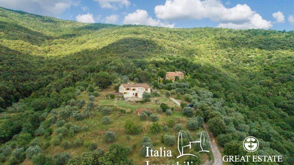 Zu renovierendes Bauernhaus von 200 qm mit Land von ca. 1,5 ha und atemberaubender Aussicht in Cortona. In der Nähe des romantischen Ortes Cortona befindet sich dieses charmante zu renovierende Bauernhaus mit einer Fläche von ca. 200 m². Das Anwesen bietet einen wunderschönen Blick auf die umliegende Landschaft und ist derzeit auf 2 Ebenen wie folgt aufgeteilt: Im Erdgeschoss befinden sich ein Holzlager, ein Keller, 3 Räume, die im Moment als Abstellraum genutzt werden und ein Badezimmer. Im ersten Stock gibt es eine Küche, ein Schlafzimmer, ein Arbeitszimmer, ein geräumiges Wohnzimmer mit großen Fenstern, die den Blick perfekt einrahmen, und eine Terrasse. Das Anwesen ist von 1,5 ha Olivenhain und Wald umgeben.