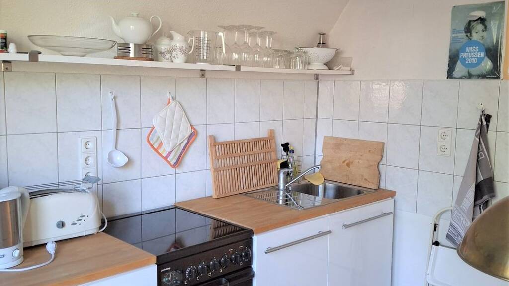 Die Hauptwohnung im Erdgeschoss umfasst 3,5 Wohnräume, eine Küche, ein Duschbad, einen Flur, einen Windfang sowie eine sonnige Terrasse mit Blick in den weitläufigen Garten. Die Wohnung ist durch ein lebenslanges Wohnrecht dauerhaft bewohnt von einem älteren Paar (93 Jahre alt). Im Dachgeschoss befindet sich eine separate Einliegerwohnung mit zwei Wohnräumen, Küche, Duschbad und Flur - ideal für Gäste, erwachsene Kinder oder zur Vermietung.