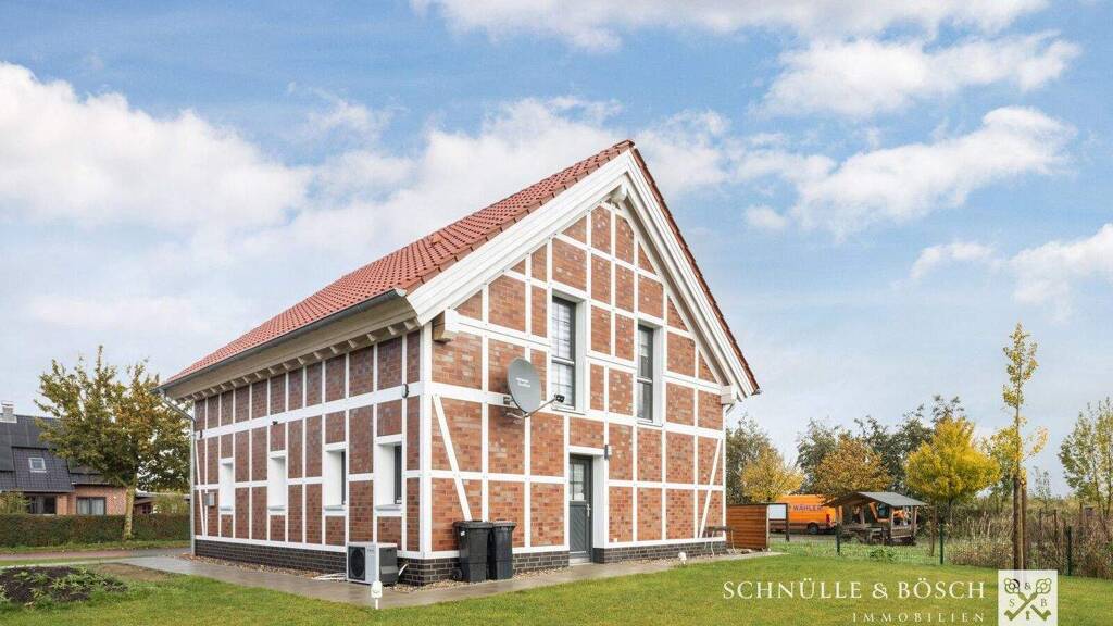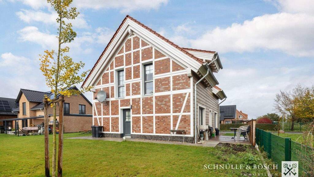 Willkommen in diesem wunderschönen, sehr jungen Haus, welches erst im Jahr 2023 fertiggestellt wurde. Das Haus besticht durch seine teilweise Fachwerkfassade und bietet auf 115,75 m² Wohnfläche ein modernes und gemütliches Zuhause für die ganze Familie.