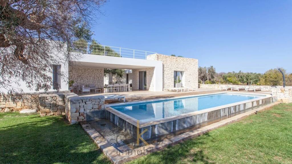 Inmitten von über 3,3 Hektar jahrhundertealten Olivenbäumen verbindet diese neu gebaute Villa mediterrane Leichtigkeit mit klarer, moderner Architektur. Naturstein aus der Region, große Glasflächen und ruhige Farbtöne schaffen helle Räume und einen fließenden Übergang zwischen Innen- und Außenleben. Mittelpunkt des Hauses ist ein geschützter Innenhof, geprägt von einem monumentalen Olivenbaum - ein ganz besonderer Ort, der Privatsphäre und Atmosphäre schenkt.