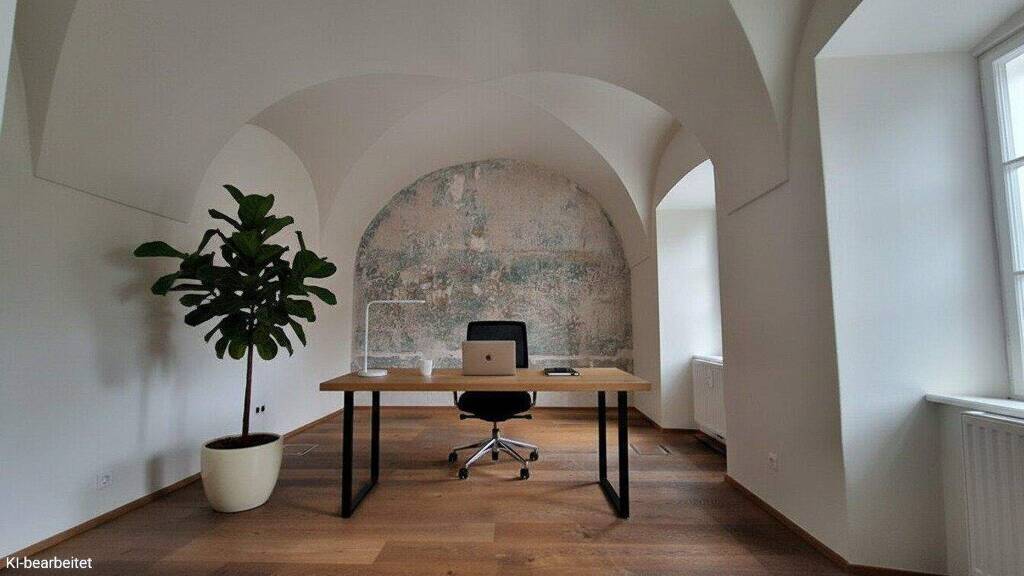 Die zur Vermietung kommende Bürofläche bietet auf etwa 95m² ein außergewöhnliches Arbeitsumfeld in historischem Ambiente.