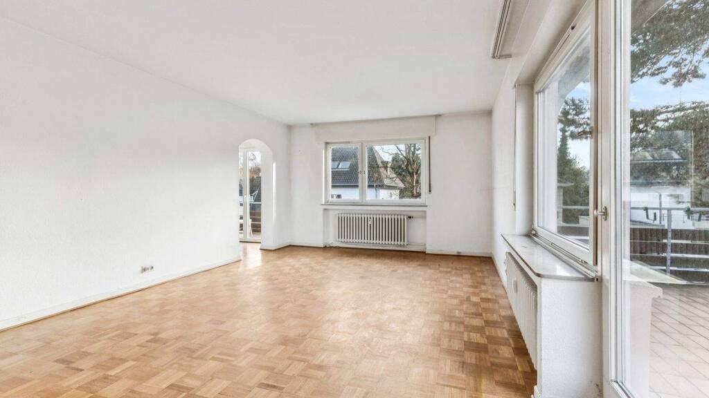 Diese großzügige Wohnung überzeugt durch ihre außergewöhnliche Raumaufteilung und ihr erhebliches Entwicklungspotenzial. Mit einer Wohnfläche von ca. 120 m² erstreckt sich die Einheit über fünf gut geschnittene Zimmer und befindet sich im ersten Obergeschoss eines im Jahr 1965 errichteten Wohngebäudes. Die Immobilie bietet ideale Voraussetzungen für Familien, Paare mit Platzbedarf oder anspruchsvolle Eigennutzer, die ihre individuellen Wohnvorstellungen verwirklichen möchten. Besonders hervorzuheben sind die beiden Balkone, die den Wohnkomfort deutlich erhöhen: Ein großer Balkon mit ca. 16 m² Fläche eröffnet vielfältige Nutzungsmöglichkeiten für Erholung, Freizeit und repräsentatives Wohnen im Freien, während ein weiterer Balkon mit ca. 3 m² zusätzlichen Rückzugsraum bietet. Eine zur Wohnung gehörende Garage rundet das Angebot komfortabel ab und gewährleistet einen sicheren Stellplatz. Die Wohnung bietet eine hervorragende Gelegenheit, die Räume nach eigenen Vorstellungen modern zu gestalten und aufzuwerten. Die solide Bausubstanz des Hauses bildet hierfür eine verlässliche Grundlage. Insgesamt handelt es sich um eine Immobilie mit Seltenheitswert, die durch ihre Größe, die außergewöhnlichen Außenflächen und das Potenzial zur individuellen Gestaltung überzeugt.