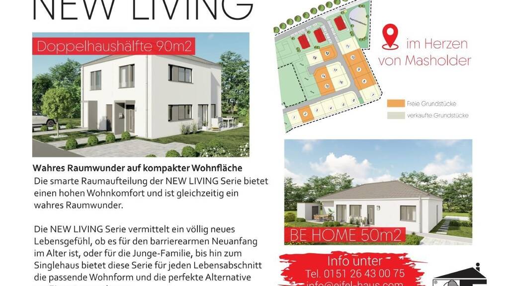 Entdecken Sie jetzt Ihr neues Zuhause in Bitburg-Masholder und lassen Sie sich von der einzigartigen Atmosphäre begeistern. Wir freuen uns darauf, Ihnen unser neues Baugebiet persönlich vorzustellen und Sie bei der Suche nach Ihrem Traumhaus zu unterstützen. Stichworte Sonstiges/Wohnen: seniorengerechtes Wohnen