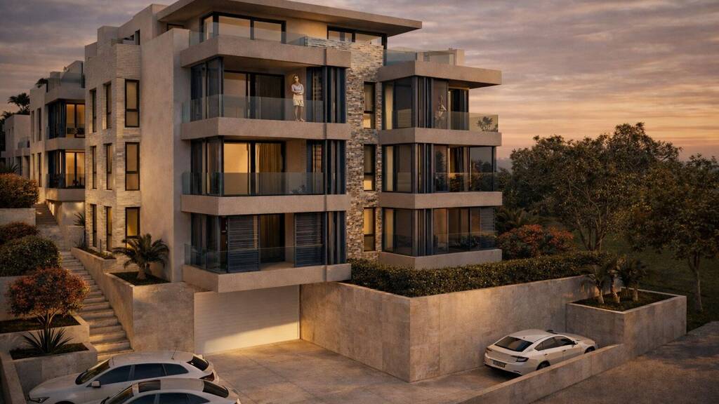Die Außenbereiche setzen ein klares Statement für modernes Küstenwohnen: Eine überdachte Terrasse mit 26,90 m² sowie eine großzügige, offene Terrasse mit 46,55 m² erweitern den Wohnraum nahtlos ins Freie. Hier entsteht ein exklusives Ambiente für entspannte Stunden, repräsentative Abende oder als Erweiterung des Lebensraums unter mediterranem Himmel - mit direkter Nähe zur bekannten Plaza Velika Raduca.