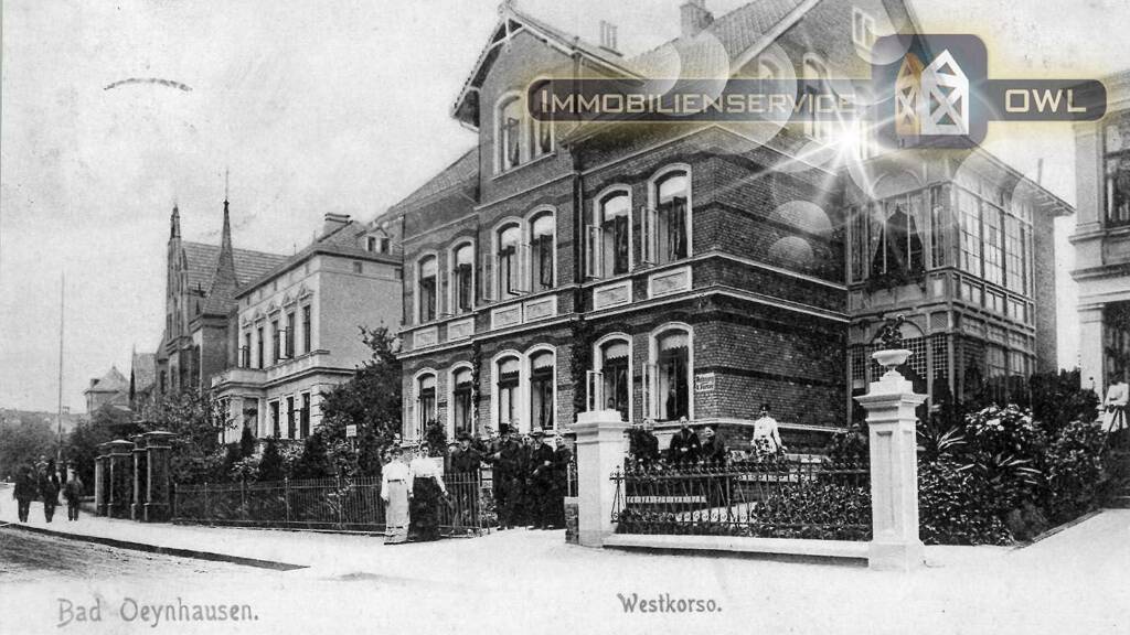 „Eine absolute Rarität am Ostwestfälischen Markt, denkmalgeschütze, Jugendstil-Villa in Premium Lage von Bad Oeynhausen gegenüber dem historischen Kurpark - auf historischen Postkarten häufig verwandtes Bildmotiv der Villenstraße des Staatsbades Oeynhausen“...