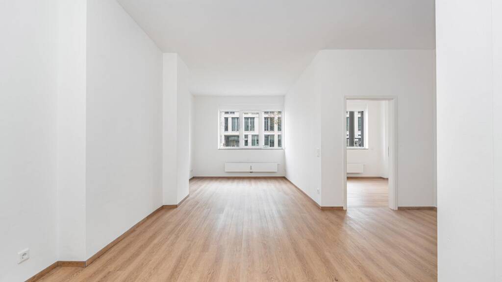Bereits beim Betreten der Wohnung fällt der großzügige Wohn- und Essbereich auf, der durch seine klare Raumstruktur vielseitig möblierbar ist. Eine moderne Einbauküche wurde letzte Woche eingebaut. Die großen Fenster sorgen für eine freundliche, lichtdurchflutete Stimmung und schaffen ein angenehmes Wohngefühl.