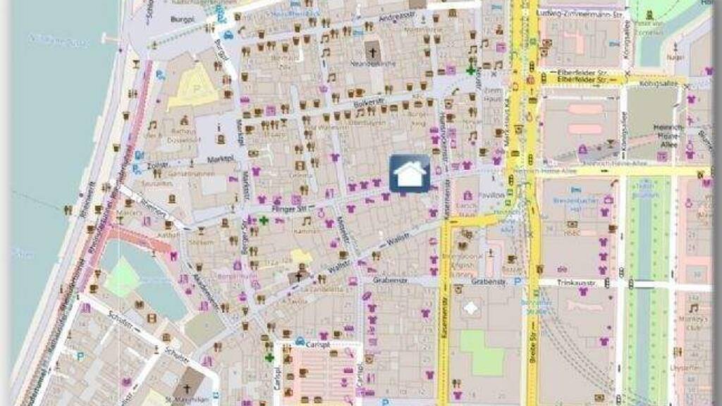 ?? **Einkaufen:** Boutiquen, Concept Stores, Wochenmarkt (Carlsplatz) und die **Königsallee** („Kö“) nur **5 Gehminuten** entfernt.