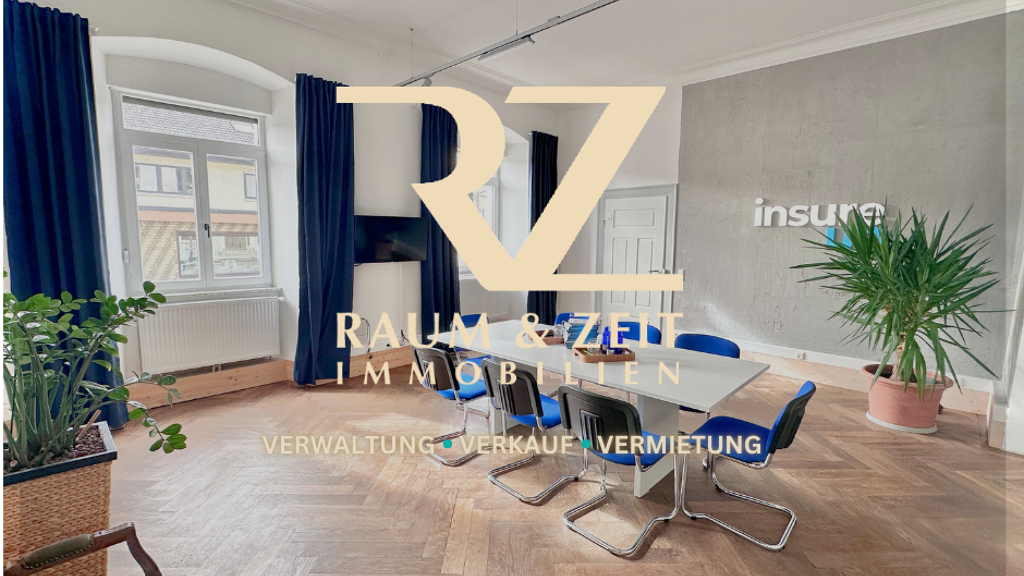 Ein besonderes Highlight der Immobilie ist der hochwertige Echtholzparkettboden im eleganten Fischgrätenmuster, der den Räumen eine stilvolle und repräsentative Atmosphäre verleiht. Die großen Fensterfronten sorgen für viel Tageslicht und schaffen eine angenehme Arbeitsumgebung. Zusätzlich unterstreichen die hohen Decken das großzügige Raumgefühl.