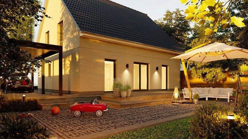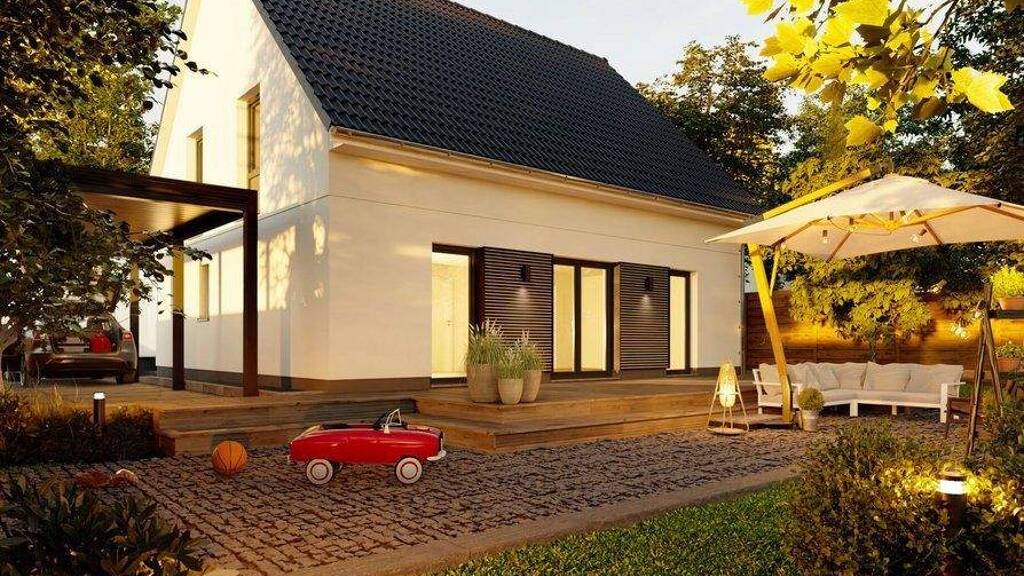 Vollausstattung inklusive - Sie wählen Ihr Traumhaus, wir bauen regional. - Wärmepumpe: Heute bereits an Morgen denken - in jedem Haus ist eine Wärmepumpe inklusive. Sie erfüllen die aktuellen Energiestandards, sparen bares Geld und reduzieren Ihren CO2-Fußabdruck. - Massiv gebaut und gedämmt: Wir setzen auf massives Mauerwerk. Das schont nicht nur Ressourcen und Ihr Budget, sondern dämmt auf ganz natürlichem Weg und ohne schädliches Styropor. - Fußbodenheizung: Warme Füße? Auch die Fußbodenheizung ist inklusive. Sie steigert nicht nur den Wert Ihres Hauses, sondern sorgt ganz nebenbei noch für echtes Wohngefühl. - Vorrüstung E-Auto: Wir denken nicht nur mit, sondern setzen auch direkt um. Alle unsere Häuser haben eine E-Auto-Vorrüstung. Damit sind sie mobil, flexibel und bleiben beweglich. - Rollläden: Ihr Haus sorgt nicht nur für ausreichend Sicherheit, sondern auch für einen sommerlichen Wärmeschutz. Bereits inklusive sind die Rollläden. - Vorrüstung Photovoltaik: Auch wenn es um Energie geht, können Sie sich sicher sein. Mit der Photovoltaik-Vorrüstung bleiben Sie flexibel und machen sich unabhängig von steigenden Energiepreisen. Dann, wenn Sie es wollen. Ausreichend Platz für einen Energiespeicher bietet Ihr Hausanschlussraum. - Sanitärausstattung: Ihre Badezimmer sind voll ausgestattet. Dazu gehört auch eine bodengleiche Dusche. - Elektroausstattung: Wir bieten Ihnen ein wenig mehr. Ihre Haustechnik sorgt für einen energiegeladenen Alltag, behagliche Wärme und umweltschonendes Wohnvergnügen. - Schlüsselfertig: Ihr Haus wird Ihnen, am Ende der Bauzeit, schlüsselfertig übergeben. Sie richten sich ganz nach Ihrem Geschmack ein. - Sicher gebaut: Ihr persönlicher Hausbau-Schutzbrief schützt Sie mit einem garantierten Festpreis, einer Bauzeitgarantie und transparenten Baukosten. Ohne Tapezier- und Bodenverlegearbeiten. Abbildungen können Sonderwünsche enthalten. *ausschließlich unter Verwendung deutscher Markenprodukte!