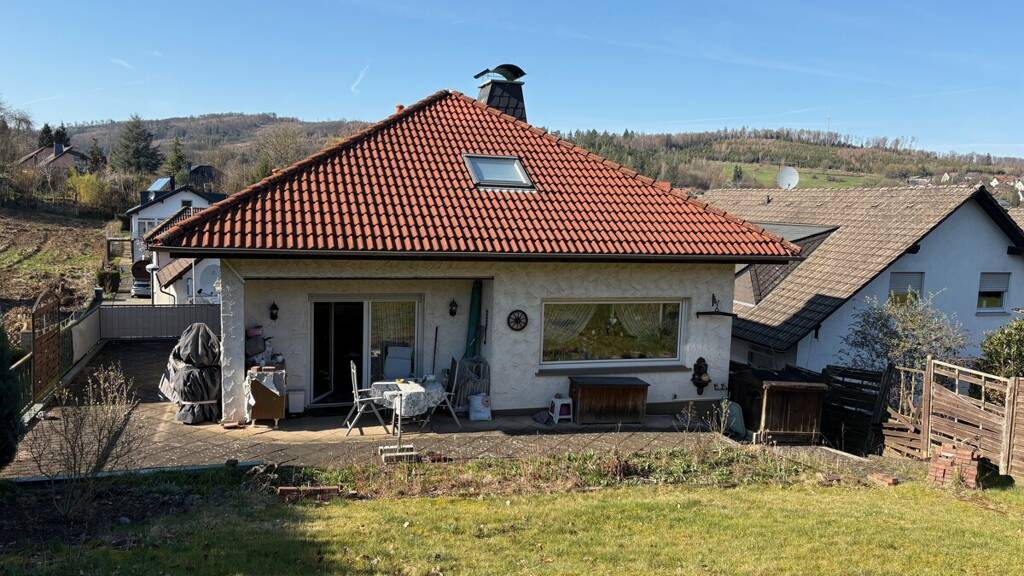 * Terrasse vorhanden | über das Wohnzimmer zu erreichen * Baujahr: 1978 * Boden: Fliesen * Dach: größtenteils aus dem Baujahr, teilweise 2009 erneuert | Dachdämmung vorhanden * Elektroleitungen: aus dem Baujahr | Sicherungskasten wurde erneuert * Fenster: Kunststofffenster mit Doppelverglasung aus dem Baujahr | Dachfenster wurden erneuert * Frei: nach Vereinbarung * Glasfaseranschluss vorhanden * Grundstücksfläche: ca. 730 m² * Heizung: Ölzentralheizung mit Warmwasseraufbereitung aus 1994 | Fußbodenheizung im gesamten Haus * Kellerräume vorhanden * Massivbauweise * Doppelgarage mit zwei Stellplätzen hintereinander | Freiplätze auf dem Grundstück * Warmwasser: über Heizungsanlage * Wasserleitungen: aus dem Baujahr * Wohnfläche: ca. 136,01 m² * Provision: 3,57% Käuferprovision (inkl. MwSt.)