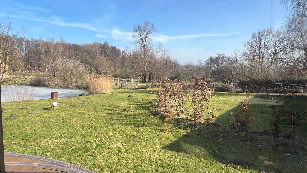Das großzügige Grundstück erstreckt sich über rund 1.980 Quadratmeter und beeindruckt durch einen nach Westen ausgerichteten, liebevoll angelegten Garten mit üppiger Bepflanzung. Ein besonderes Highlight ist der im Grundstückspreis inbegriffene Seeanteil mit direktem Wasserzugang auf etwa 100 Quadratmetern – eine wahre Oase der Ruhe und Erholung.
