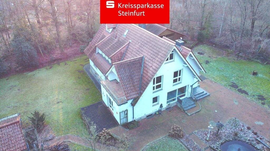 Diese einmalige Gelegenheit bietet sich Ihnen kein zweites Mal. In absolut ruhiger, naturnaher Lage von Ibbenbüren-Dickenberg befindet sich dieses imposante Anwesen auf einem 6.066 m² großen Eigentumsgrundstück. Die großzügige Immobilie eignet sich hervorragend als Ein- oder Zweifamilienhaus, für mehrere Generationen oder auch für Selbständige. Das ursprünglich ca. 1934 erbaute Haus wurde ca. 1994 um einen großzügigen Anbau erweitert und umfassend saniert. Ein besonderes Highlight ist die höhere lichte Raumhöhe im Erdgeschoss. Die Wohnfläche von ca. 231 m² verteilt sich auf zwei Wohnungen im Erd- und Obergeschoss, zusätzlichen Platz bieten der ausgebaute Spitzboden sowie der Keller. Auf Grund der attraktiven Wohnlage sind Kindergärten, Grundschule, Sporteinrichtungen, Reitplatz und Einkaufsmöglichkeiten in fußläufiger Entfernung.