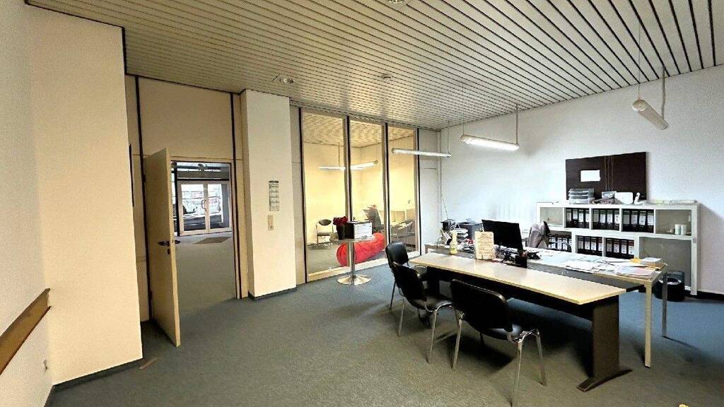 Die Fläche gliedert sich in einen großzügigen Eingangs- bzw. Verkaufsbereich mit vorgelagertem Wartebereich sowie ein großes, angrenzendes Büro. Ein zusätzlicher, separat nutzbarer Raum ist über eine kleine Treppe im hinteren Bereich der Einheit erreichbar und kann beispielsweise als Büro, Besprechungs- oder Abstellraum genutzt werden.