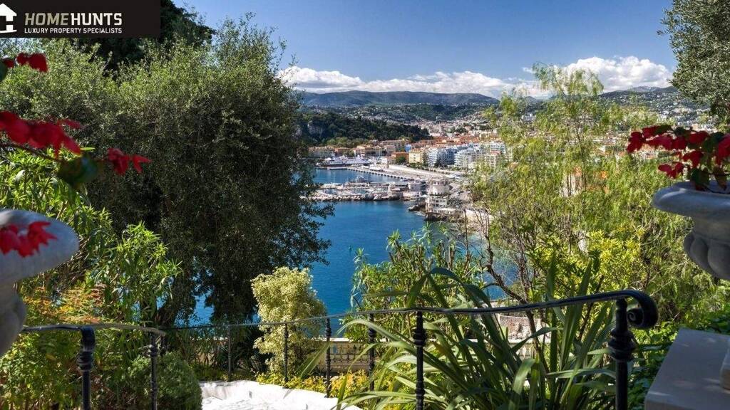 Diese komplett renovierte und absolut sichere Art-Déco-Villa bietet mehr als 1000 m2 Wohnfläche und besticht durch ihre ultra-luxuriöse Ausstattung und einen atemberaubenden Blick über den Hafen von Nizza und die Baie des Anges bis hin zu den Esterel-Hügeln.