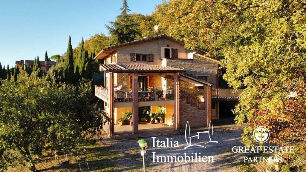 Die Villa "Incanto sul Tezio" ist eine wahre Oase der Ruhe inmitten der Natur, nur 15 Minuten vom historischen Zentrum Perugias entfernt. Dieses wunderschöne Haus mit einer Wohnfläche von ca. 300 Quadratmetern liegt in einer herrlichen Landschaft, umgeben von einem über einen Hektar großen, sanft abfallenden Grundstück mit Dutzenden jahrhundertealter Olivenbäume und angrenzend an einen unberührten Wald. Von der Villa aus bietet sich ein außergewöhnlicher Panoramablick über die umbrischen Täler bis hin zum Ufer des Trasimeno Sees, der in der Ferne sichtbar ist.