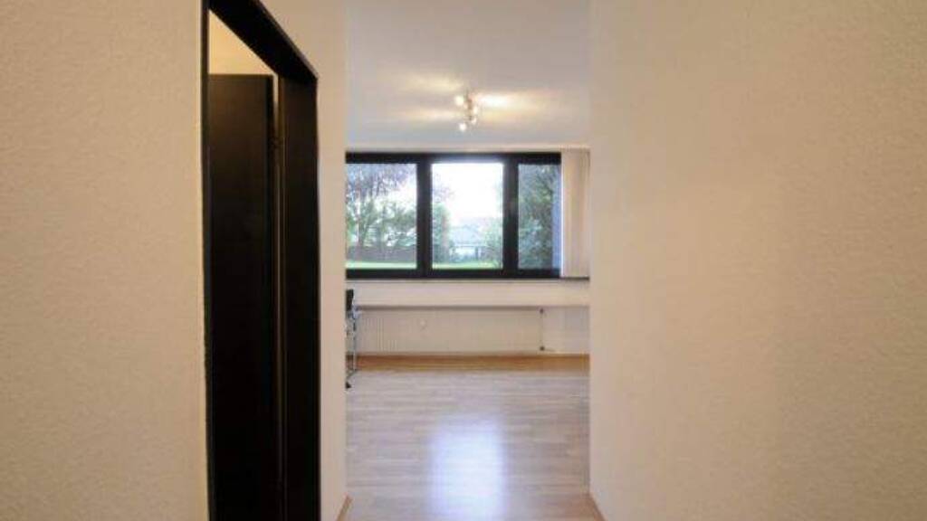 In landschaftlich reizvoller Umgebung liegt diese gemütliche Singlewohnung im Souterrain eines architektonisch interessant gestalteten Gebäudes. Vom Flur zweigen links das Bad und die Küche, geradeaus der Wohnraum und rechts das Schlaf- oder Ankleidezimmer ab. Das moderne weiße Bad ist gerade erneuert worden und verfügt über eine Badewanne mit integrierter Duschmöglichkeit. Die Einbauküche gehört zur Wohnung und beinhaltet viel Stauraum. Das geräumige Wohnzimmer bietet mit seiner großen Fensterfront einen schönen Blick ins Grüne. Im Schlaf- oder- Ankleidezimmer gibt es einen großen Einbaukleiderschrank. In den Zimmern liegt neues Laminat, Bad und Küche sind mit Fliesen versehen. Vom Vormieter können bei Bedarf einige neuwertige Möbel käuflich erworben werden: Bett mit Nachttisch, Schlafsofa, Couchtisch, Badschränke und Schuhschrank.