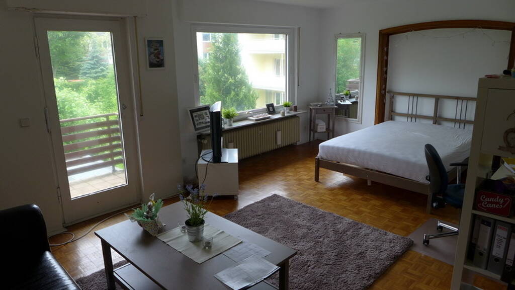 Helle 4-5 Zimmer-Wohnung im 1 Obergeschoss eines Dreifamilienhauses mit ca. 96 m² Wohnfläche weche zuvor als WG genutzt wurde. Die Wohnung verfügt über drei-vier Schlafzimmer, ein gemütliches Wohnzimmer, eine separate Küche und ein renoviertes Bad mit ebenerdiger Dusche. Zur Wohnung gehören außerdem zwei Balkone sowie ein Kellerraum. Die Garage kostet monatlich zusätzlich € 60.-. Eine Waschküche im Keller steht zusätzlich zur Verfügung.