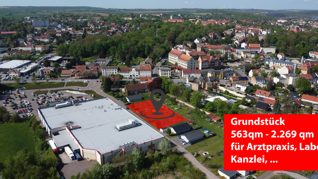 Grundstück für nicht störendes Gewerbe (Arztpraxis, Labor, Kanzlei, ...) auf 2.269 qm (teilbar ab 563 qm) für den Bau einer individuell geplanten Gewerbeeinheit. Auf dem Grundstück sind maximal zwei Vollgeschosse möglich. Sprechen Sie direkt mit dem Eigentümer über Ihre Wünsche und Vorstellungen - Telefon 03464-24150.