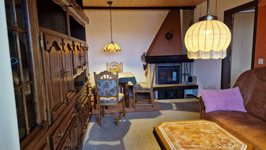 Das Wohnzimmer besticht durch einen gemütlichen Kamin, der an kalten Abenden eine behagliche Atmosphäre schafft. Nach einem erlebnisreichen Tag in der Natur können Sie hier entspannen und die Seele baumeln lassen.