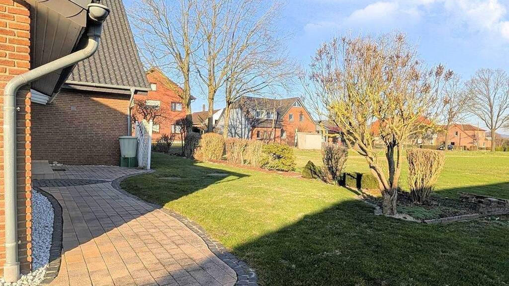 Das Einfamilienhaus in Wulferdingsen ist tatsächlich deutlich älter, als man es auf den ersten Blick vermutet - schließlich stammen Klinker, Fenster und Dach aus den 1990er Jahren. Tatsächlich ist das Gebäude jedoch ca. 1909 als typisches Wohnhaus im ländlichen Bereich mit einem großen Grundstück zur Selbstversorgung entstanden. Das Grundstück ist selbstredend noch da. Die Versorgung wird aber heutzutage durch die nahen Supermärkte in Wulferdingsen oder Volmerdingsen sichergestellt.