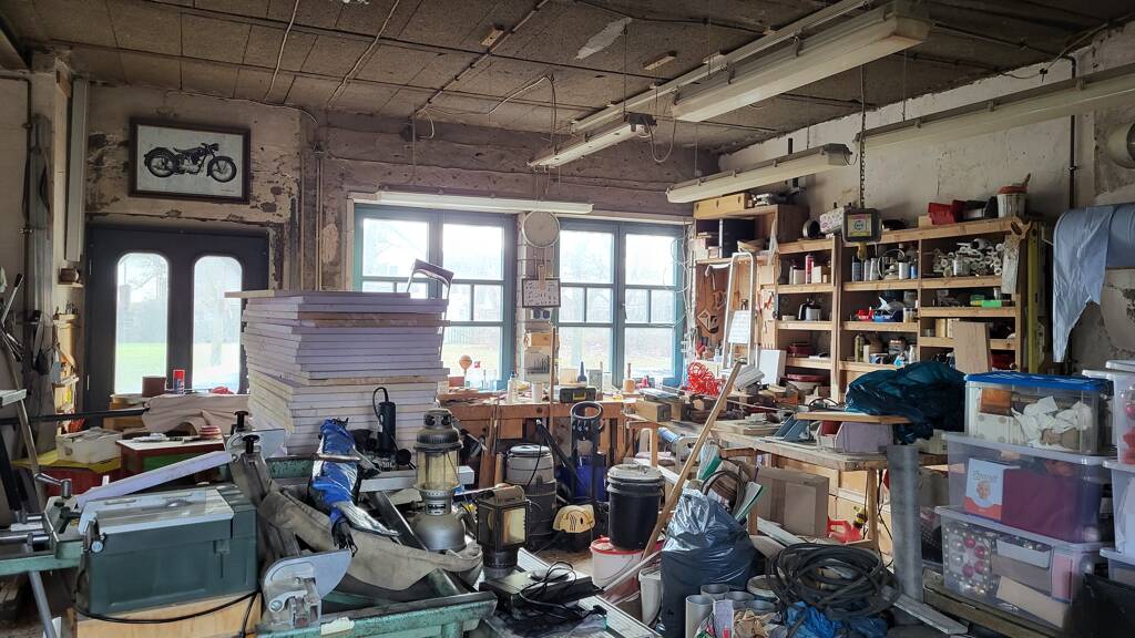 Die angrenzende Werkstatt erstreckt sich über zwei Etagen und wurde gewerblich genutzt. Sie bietet vielerlei Möglichkeiten, auch wäre hier ein Ausbau zu Wohnraum möglich.