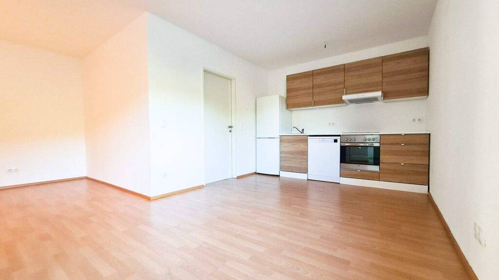 Wir freuen uns Ihnen diese ca. 44,85 m² Wohnung mit eigenem Aus- bzw. Eingang direkt ins Freie zur Miete anbieten zu können. Die neuwertige Wohnung betritt man durch den gepflegten Eingangsbereich, der sich in einen hellen und freundlichen Wohn- Essbereich mit moderner Küchenzeile öffnet. Linker Hand befindet sich ein kleiner Abstellraum. Weiters gibt es ein gefliestes Badezimmer guter Größe mit verglaster Duschkabine und einer Toilette. Ein Schlafzimmer ist vorhanden. Im Vorzimmer und im Badezimmer wurden moderne Fliesen verarbeitet. In allen anderen Räumen der Wohnung wurde Holzparkett verlegt. Vor dem Haus befindet sich ein großer Parkplatz zur freien Nutzung für alle Hausbewohner. Im geschützten Innenhof gibt es Grünflächen.