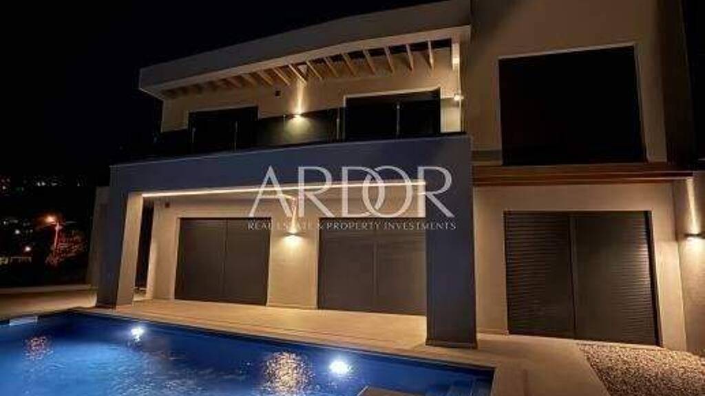 Die Villa verfügt über eine Wohnfläche von 200 m² und liegt auf einem Grundstück von 400 m², verteilt auf mehrere Ebenen. Im Untergeschoss befinden sich eine große Garage, eine traditionelle Taverne (Konoba) sowie ein geräumiger Abstellraum. Über eine Innentreppe gelangt man ins Erdgeschoss, das aus einem Gästezimmer, einem großzügigen Open-Space-Wohnbereich mit Küche und Essbereich besteht, mit direktem Zugang zur Terrasse, zum Pool und zur Sommerküche. Auf derselben Ebene befinden sich zudem ein Hauswirtschaftsraum mit Waschküche sowie ein zusätzliches WC.