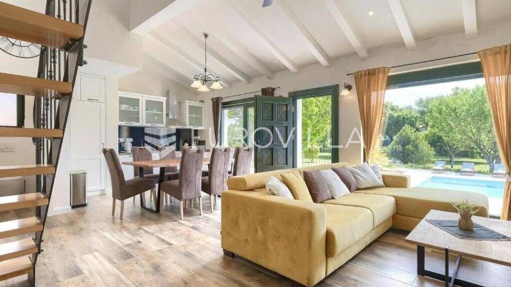 Istra, Rovinj - predivno imanje s dvije kuce, bazenom i potpunom privatnoscu u zelenoj oaziOvo skladno imanje sastoji se od glavne kuce, gostinjske kuce i bazena, a osmisljeno za maksimalnu udobnost, privatnost i sofisticiran stil zivota.Glavna kuca (200 m²) - elegantna udobnost na dvije etazePrizemlje:Prostor otvorenog koncepta: kuhinja, blagovaonica i dnevni boravakGostinjski toaletDvije spavace sobe - svaka s vlastitom kupaonicomVisoko potkrovlje:Galerijski prostorDodatna spavaca soba s privatnom kupaonicomGostinjska kuca - privatnost i funkcionalnostDnevni boravak s kuhinjomSpavaca sobaKupaonicaSve prostorije su klimatizirane, a dizajn i oprema brizljivo birani kako bi ispunili moderne standarde stanovanja.Vanjski prostor - sklad prirode i udobnostiBazen sa slanom vodom, povrsine 32 m², okruzen suncalistemLjetna blagovaonica natkrivena pergolomVeliki otvoreni kamin - idealan za druzenjaU potpunosti ogradena okucnica povrsine 2.976 m²Automatizirano navodnjavanje iz vlastite busotineUredeni vrt sa maslinama, vockama i autohtonim raslinjemDodatne znacajkeVrlo mirna mikrolokacija u blizini plaza i svih potrebnih sadrzajaOdlicna prilika za luksuzno privatno stanovanje ili turisticki najamOkruzena bogatim zelenilom u mirnom i ugodnom dijelu prekrasnog Rovinja, na svega nekoliko minuta od plaze, ova iznimna nekretnina spaja vrhunsku lokaciju, bezvremenski dizajn i izvanrednu kvalitetu gradnje.Ova nekretnina idealna je za sve koji traze prestiz, mir, privatnost i blizinu jednog od najljepsih obalnih gradova u Hrvatskoj.Za dodatne informacije slobodno nas kontaktirajte.... Vise na eurovilla.hr, ID: 287936