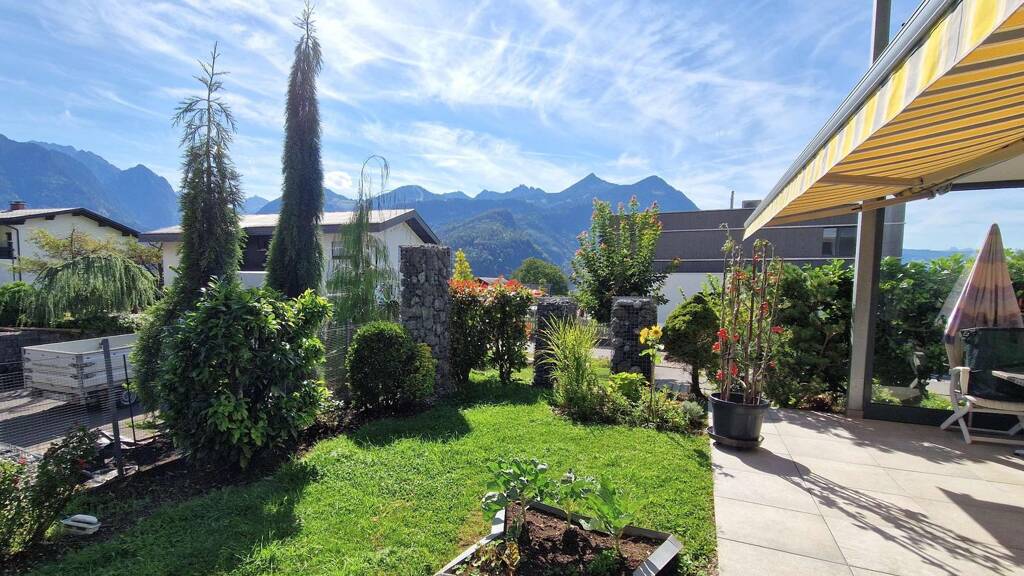 In sonniger Aussichtslage von Nüziders verkaufen wir diese charmante 3-Zimmer-Gartenwohnung. Sie befindet sich in leichter Hanglage und bietet einen traumhaften Rundumblick auf das umliegende Bergpanorama – ideal für alle, die Ruhe, Licht und Natur schätzen. Der großzügige Wohn-Essbereich ist dank großer Verglasungen und Schiebetüren besonders hell und freundlich gestaltet. Sowohl die Küche mit gemütlichem Essplatz als auch das geräumige Wohnzimmer bieten direkten Zugang zur sonnigen Südterrasse. Diese ist mit einer elektrischen Markise ausgestattet und verfügt über einen praktischen Windschutz – perfekt zum Entspannen, Genießen oder für gesellige Abende im Freien. Ein zusätzlicher Balkon in Westausrichtung sorgt für stimmungsvolle Sonnenuntergänge. Die Gartenwohnung verfügt weiters über zwei Schlafzimmer, ein großes Badezimmer sowie ausreichend Stauraum und überzeugt durch ihre durchdachte Raumaufteilung, die hochwertige Ausstattung und ihre einmalige Lage. Ein Zuhause zum Wohlfühlen – ob als Hauptwohnsitz oder Feriendomizil. In wenigen Gehminuten Nähe befinden sich Einrichtungen des täglichen Bedarfs, ebenso der Kindergarten und die Volks- und Mittelschule. In näherer Umgebung ist auch das Naherholungs-gebiet rund um den Muttersberg erreichbar sowie die Alpenstadt Bludenz mit Cafés und Restaurants.
