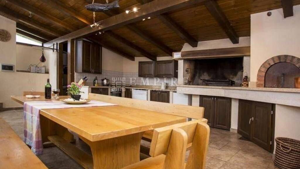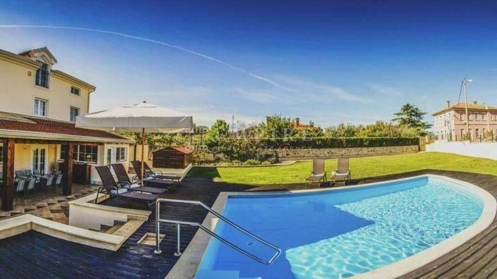 Zum Verkauf steht eine großzügige Villa mit 350 m². Die Villa besteht aus einer Küche mit Wohnzimmer und Essbereich, sechs Schlafzimmern mit Badezimmern, einem Flur, einer Sommerküche mit Holzofen und Essbereich, einer Loggia und einer überdachten Terrasse. Die Immobilie ist als Entspannungsraum konzipiert und mit Details im istrischen Stil versehen. Eichenparkett und freiliegende Balken im Dachgeschoss vermitteln ein warmes Gefühl. Das großzügige Grundstück von 923 m² verfügt über eine Sommerküche. Der 40 m² große Pool, die Sommerküche und die überdachte Terrasse mit Garten-Sofa und Essbereich ermöglichen es, die Sommermonate mit vollem Komfort im Freien zu genießen. Ruhige Lage!