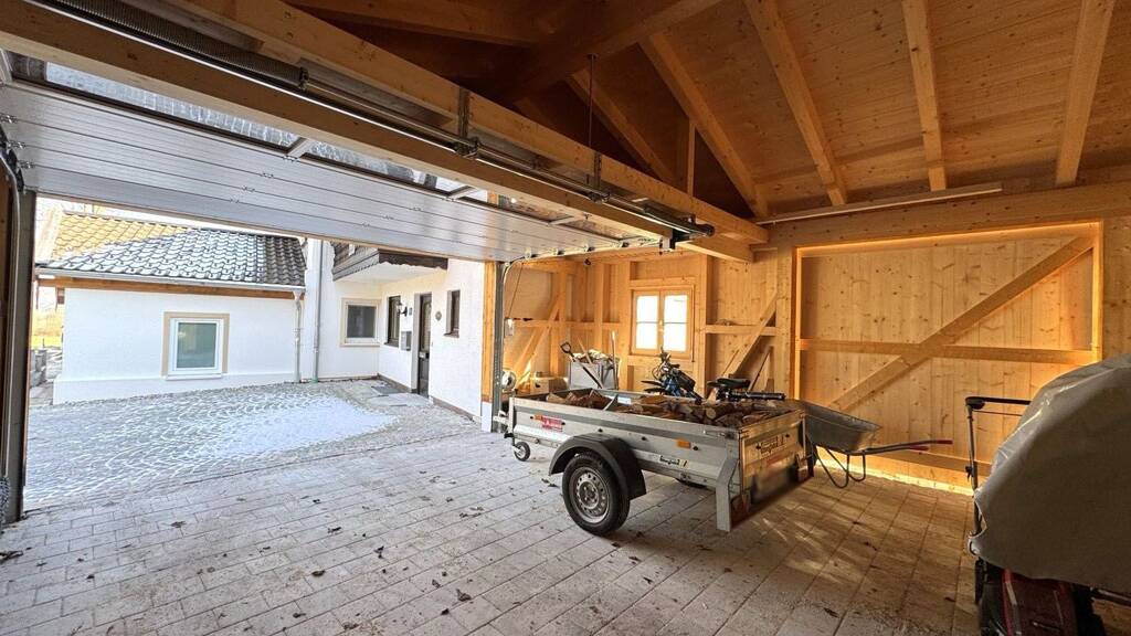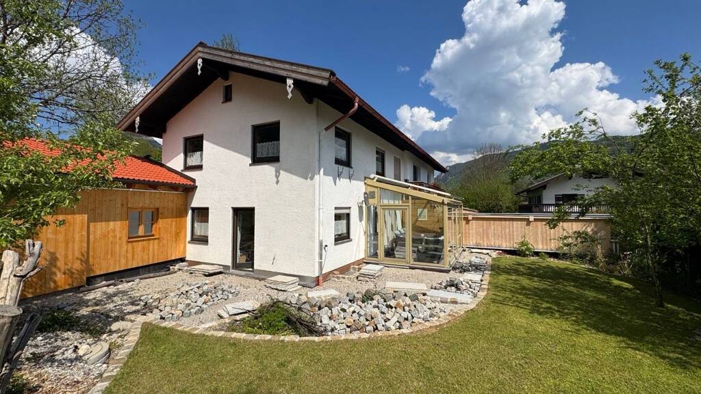 Sehr gepflegte Haushälfte *** Viele Erneuerungen: 2022/23: Feinputz einiger Innenwände + Innen gemalert + Vinylparkett 3 Schlafzi.+ Küchenscheiben West + Außenanlagen (Neuer Hauswasseranschluss; Sickerschacht; Kellerabdichtung samt Isolierung; Aufwändige Terrassen- und Gartenneugestaltung samt Bodenaufbau (vorhandene Terrassen-Granitplatten müssen nur noch verlegt werden); Holzlege; Hof-Granitpflaster) | 1995: Teils Elektrik und Nachtspeicheröfen + Bad und WC je vollständig + Fliesen Wohnzimmer und Küche + Vom Schreiner: Wand- und Deckenvertäfelungen mit Einbauten wie z. B. im Süd-West-Zimmer Regale mit Schubläden und Arbeitsfläche; Kücheneckbank mit Tisch und Stühlen; Einbauküche mit Holzfronten; Gemütliche wirkende Holzdecken im Wohnzimmer und Küche; Raffinierter Wohnzimmer-Einbauschrank | 1991: Herrlicher Wintergarten mit elektrischer Fußbodenheizung und Beschattung; Kachelofen *** Lichtdurchflutete Ess-Küche mit 2 Fenster und Terrassentür *** Gäste-WC *** Im OG gibt es zu den 3 Zimmern ein großes Bad mit Wanne, Dusche und Doppelwaschbecken, sowie einen Balkon *** Keller mit Waschmaschinenanschluss und Boiler *** Diele, Treppe und Flur OG mit Marmor *** Schöne Holzfüllungstüren *** Dachspeicher über Einschubtreppe zugängig *** Außenrollos an Fenster und Terrassen-/Balkontüren *** Holz-Doppelgarage aus 2023 mit Fenster, Schiebetor zum Garten und elektr. Sektionaltor *** Viel neuwertiges Inventar auf Wunsch wie z. B. die Gästezimmereinrichtung, der große Schlafzimmerschrank mit Spiegel, Lampen, Gardinen etc. *** Nur Erstwohnsitz erlaubt *** Weitere Fotos und Infos auf Anfrage