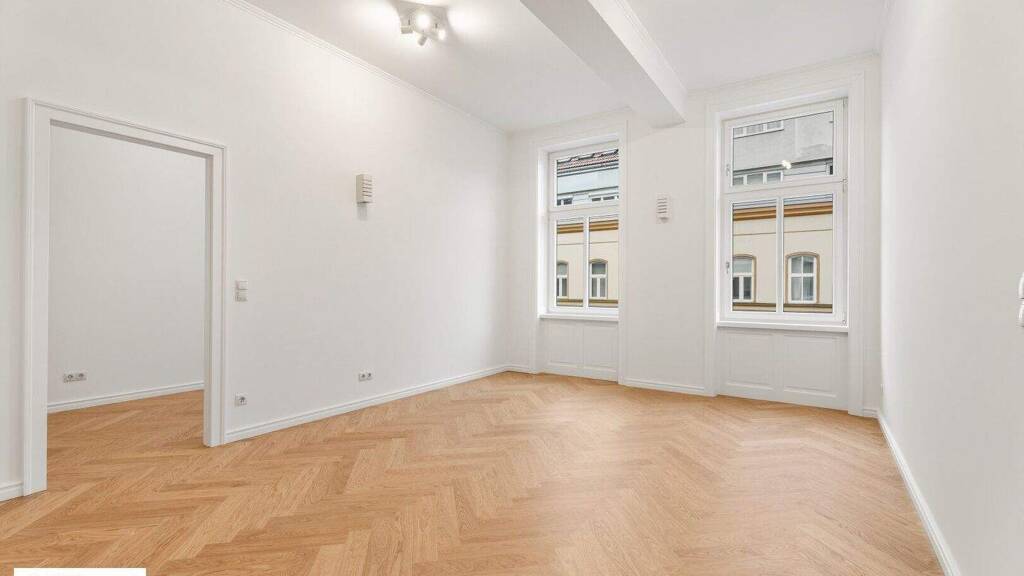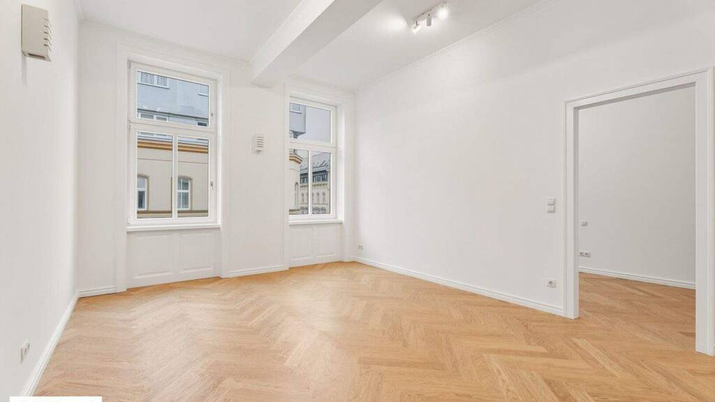 Die Wohnung präsentiert sich im Erstbezug nach Top-Sanierung mit hochwertigem Eichen-Fischgrätparkett, klassischen Altbautüren und wunderschön aufgearbeiteten Altbaufenstern, was den Räumen ein stilvolles Ambiente verleiht und den zeitlosen Charakter des Hauses unterstreicht.