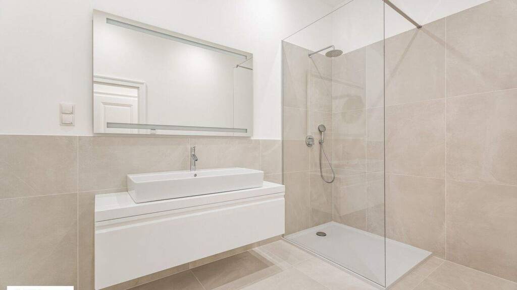 Diese hochwertig sanierte Altbauwohnung im 3. Obergeschoss vereint klassischen Charme mit modernem Wohnkomfort. Bereits beim Betreten zeigt sich die durchdachte Raumaufteilung: Links befindet sich ein praktischer Abstellraum, während rechts die separate Küche liegt. Anschließend folgt ebenfalls auf der rechten Seite das elegant gestaltete Badezimmer mit Dusche. Direkt gegenüber befindet sich das separate WC.