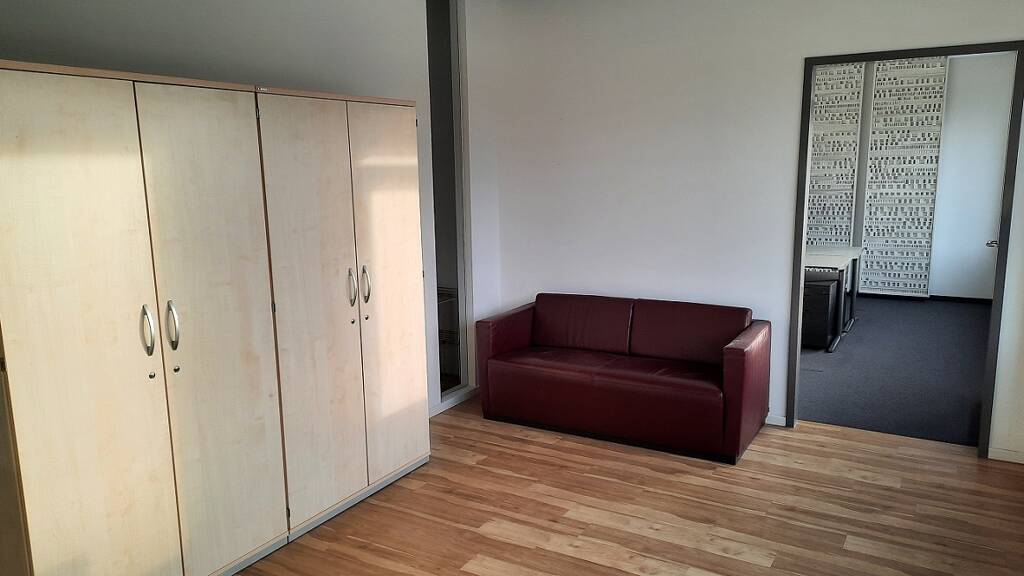 Das Büro besteht aus 2 Räumen, welche beide mit einer großen Fensterfront ausgestattet sind.