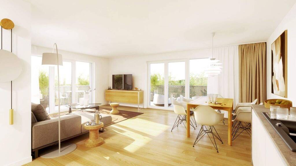 Zudem wird die gesamte Wohnanlage barrierefrei nach § 35 LBO sowie der DIN 18040-2 errichtet. Die durchdachten Grundrisse der Wohnungen werden durch hochwertige Ausstattungsdetails ergänzt, die das moderne Gesamtbild vervollständigen. Edles Eichen-Parkett in allen Wohn- und Schlafräumen sorgt für eine warme und ansprechende Atmosphäre, während die Fußbodenheizung für eine gleichmäßige Wärmeverteilung sorgt und zugleich eine flexible Möblierung ermöglicht.