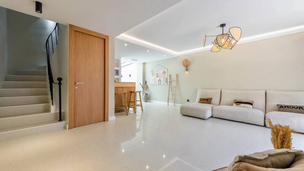 Finally the top floor offers a clear view with a glimpse of the sea, two spacious master suites, each with private bathroom and plenty of storage space.