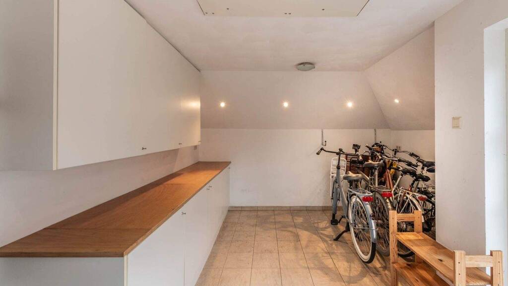 ground floor: entrance, large l-shaped hall with wardrobe and wc. from the hall, access is provided to the garage on the right and the living room on the left. at the front of the house are the dining room and a dedicated office space. through the sliding doors of the dining room, you enter the rear of the house, where a cosy sitting room features a gas fireplace, a wide wall of built-in cupboards, and double doors opening onto the backyard. the spacious, modern siematic kitchen is open to the living room and features a large cooking island equipped with a built-in teppanyaki plate and an induction wok, along with additional features. one wall is fitted with a range of modern kitchen appliances. the utility room, accessible from both the garage and the kitchen, is equipped with a washing machine connection and a kitchen unit with a sink. the double french doors open onto a beautiful, spacious garden featuring a partially covered terrace, multiple seating areas, and a stylish garden shed.